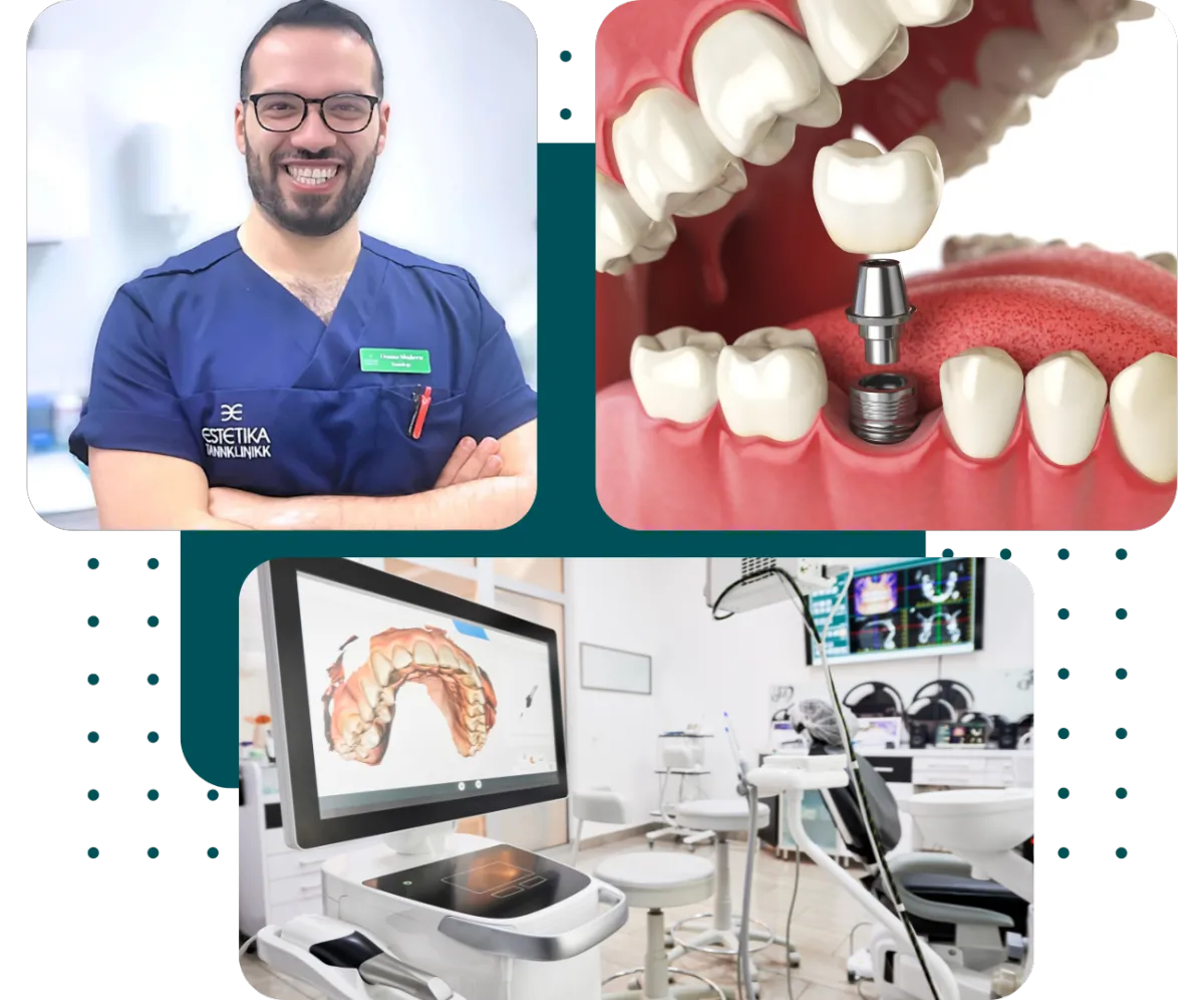 Behandlingen er populær og trygg for å erstatte en/flere tapte tenner og en mye mer langsiktig løsning sammenlignet med proteser eller falske tenner. Vi i Estetika Tannklinikk har flere års erfaring og har utført mange tannimplantater fra ulike produsenter og med ulike forutsetninger.